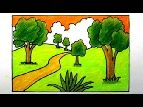 Cara Menggambar Dan Mewarnai Pemandangan Alam Mudah