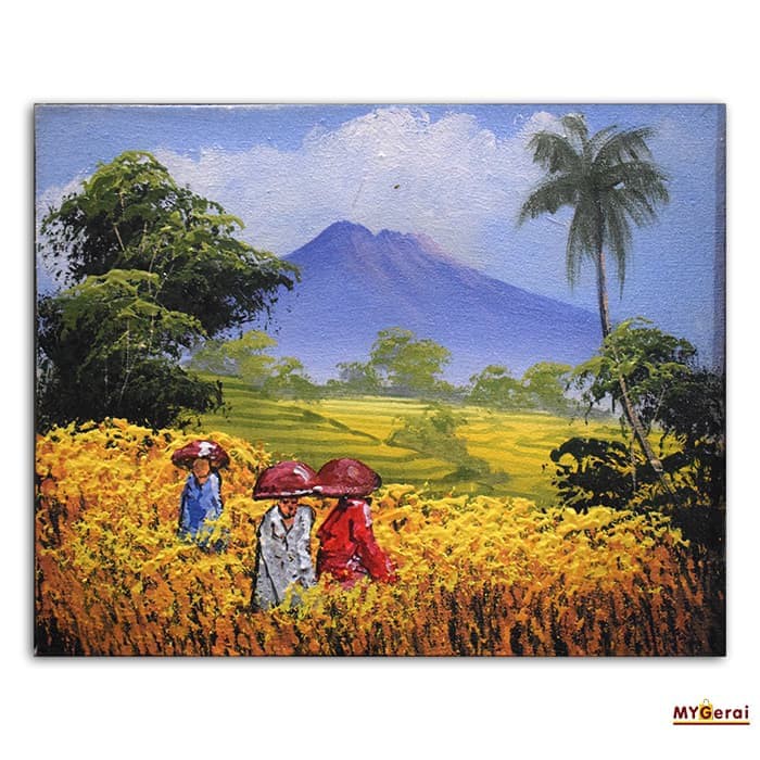 Jual Lukisan Pemandangan Sawah Yang Menguning Dan Panen ...